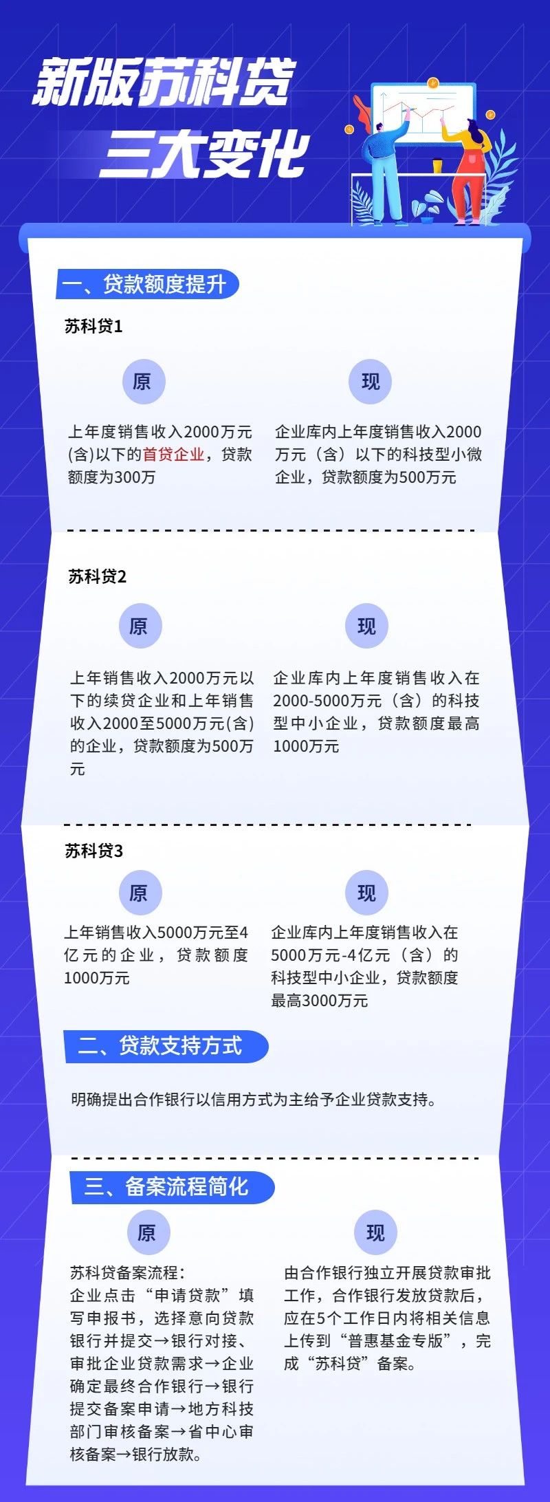 1.省財(cái)政廳會(huì)同省科技廳在 “江蘇省普惠金融發(fā)展風(fēng)險(xiǎn)補(bǔ)償基金”項(xiàng)下設(shè)立“蘇科貸”子產(chǎn)品,為“蘇科貸”備選企業(yè)庫(簡稱“企業(yè)庫”)內(nèi)符合國家劃型標(biāo)準(zhǔn)的科技型中小微企業(yè)提供低門檻、低成本的信貸支持。 “蘇科貸”依托省普惠金融發(fā)展風(fēng)險(xiǎn)補(bǔ)償基金專版(簡稱“普惠基金專版”)實(shí)現(xiàn)全流程信息化管理。省財(cái)政廳根據(jù)省與市(縣)風(fēng)險(xiǎn)補(bǔ)償基金規(guī)模、不良貸款情況等,每年確定“蘇科貸”年度投放額度上限。